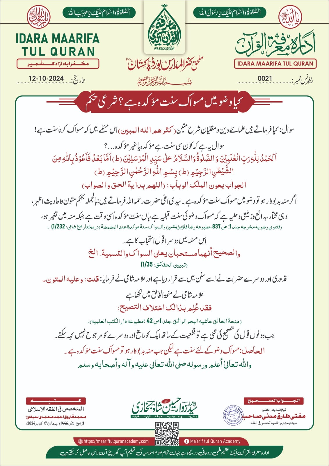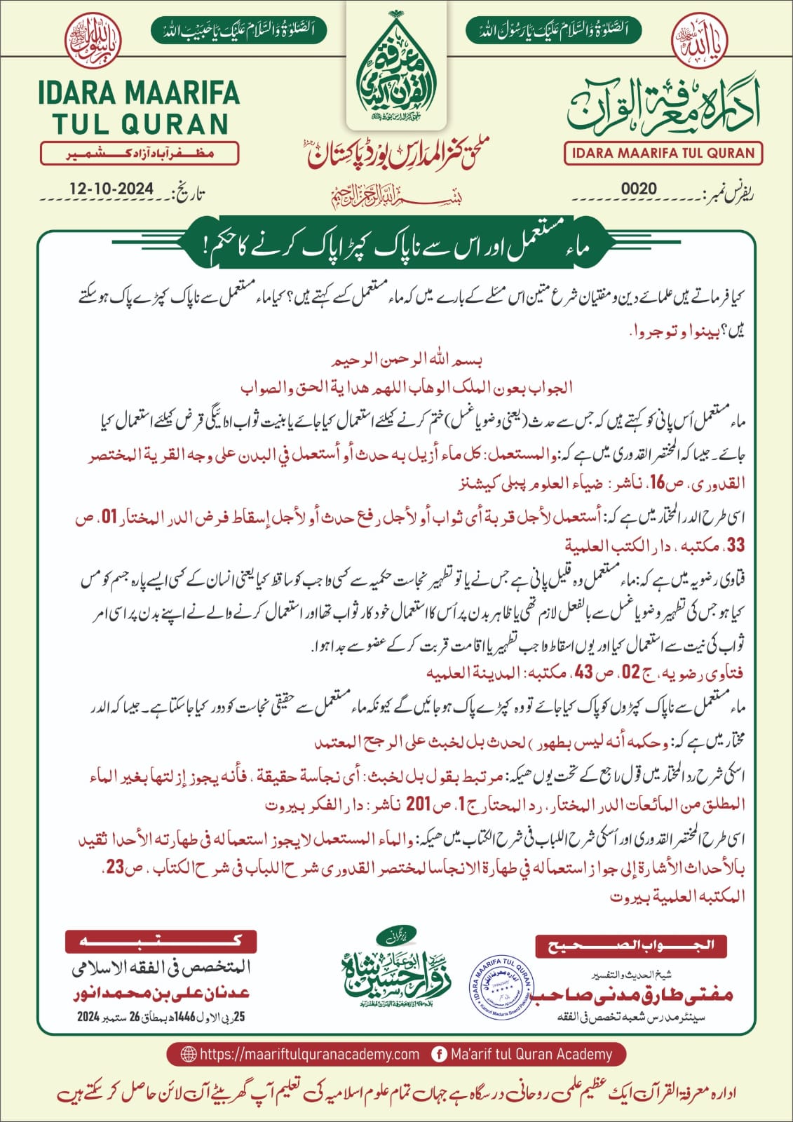 Marifatul Quran AcademyMuzaffarabad, Azad Kashmir
